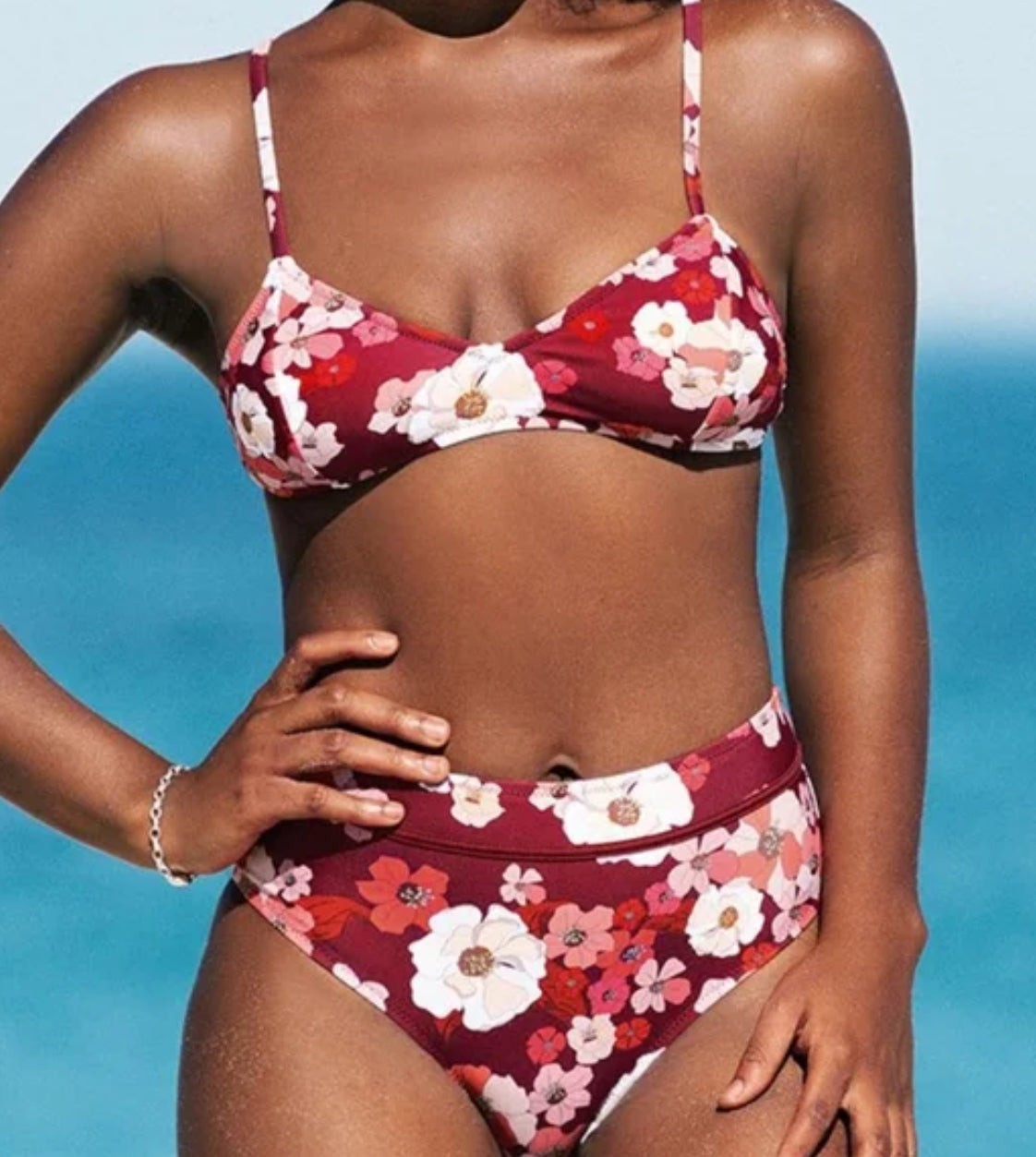 Cupshe Marroon floral high waisted bikini set