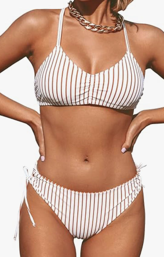 CUPSHE Women's Back Braided Straps Reversible Bottem Strappy Lace Up Bikini