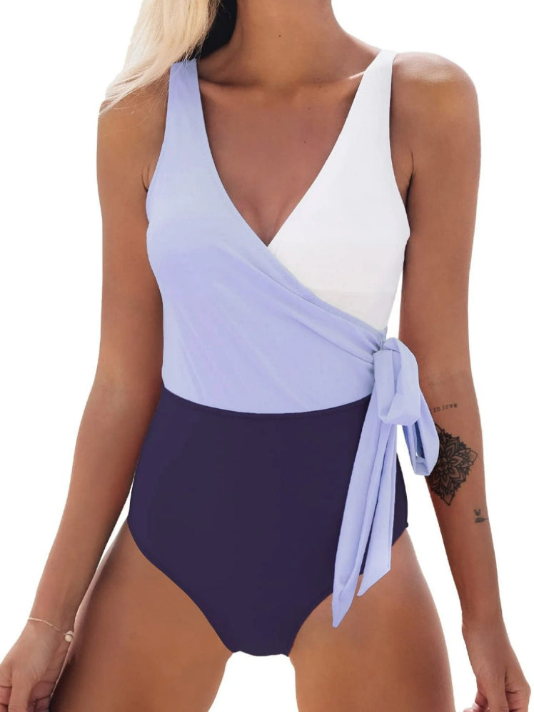 Cupshe Women's One Piece Swimsuit Wrap Color Block Tie Side Bathing Suit Purple