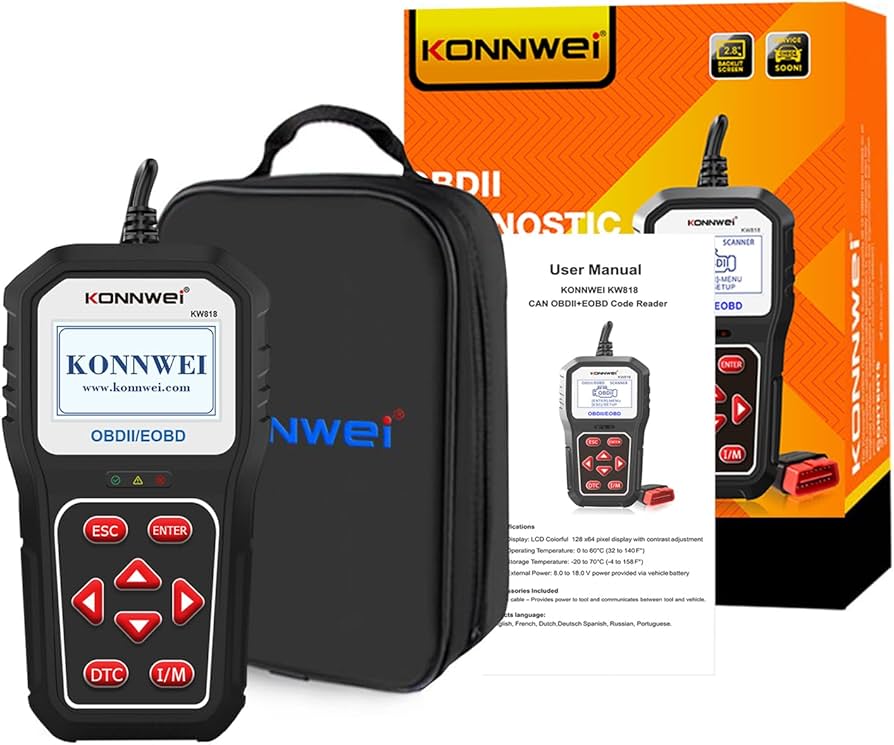 • KW818 New Version auto tester is a professional diagnostic scan tool for vehicle owners, it has almost full OBDII functions, including Read codes,Erase codes,I/M readiness, Data stream,Freeze Frame,O2 Sensor Test,On-Board Monitoring,Evap System,Vehi