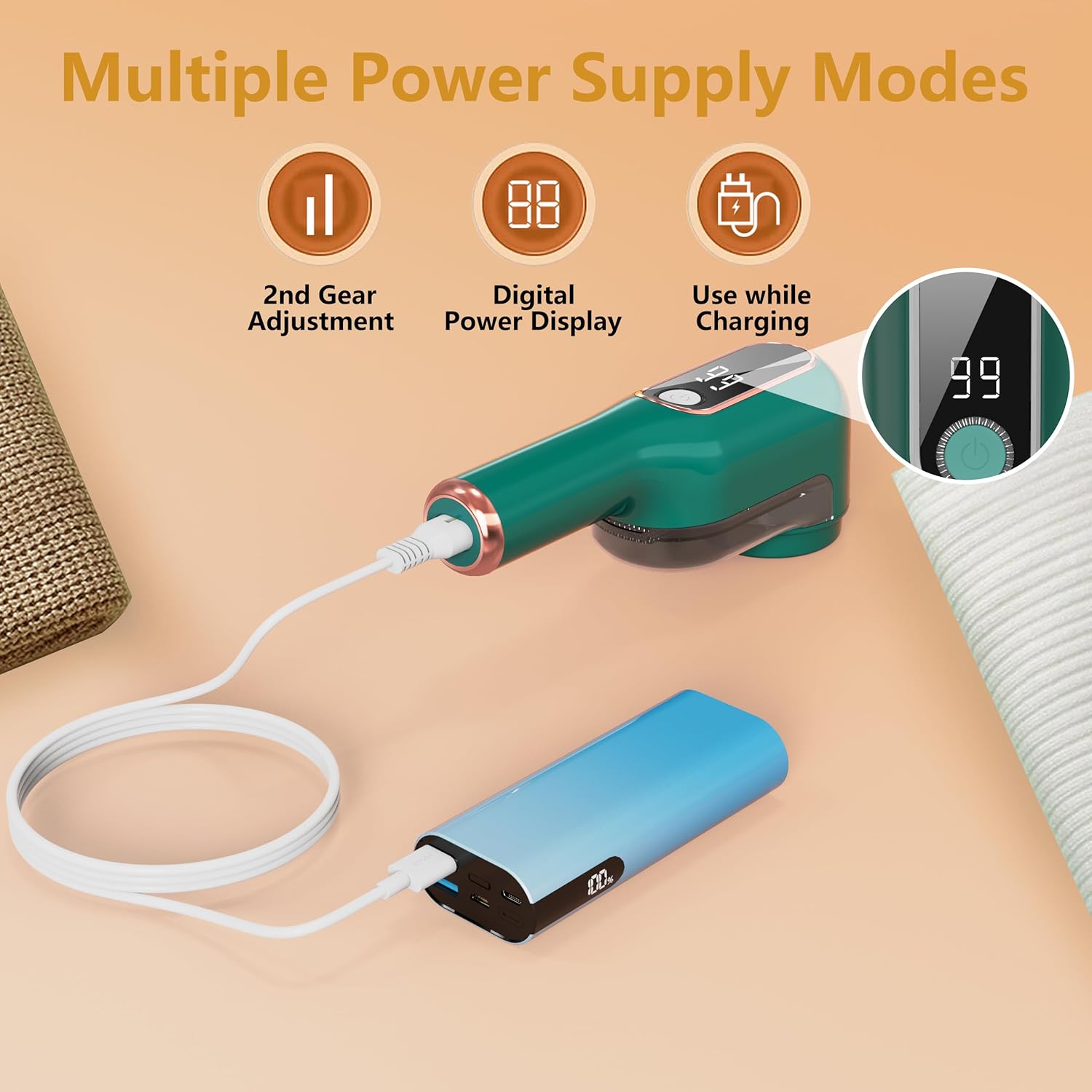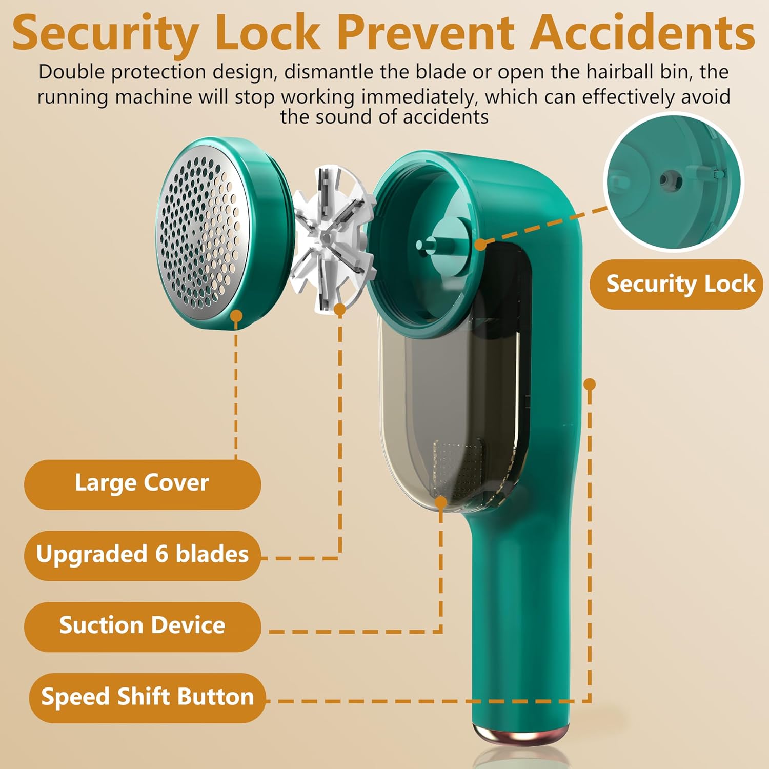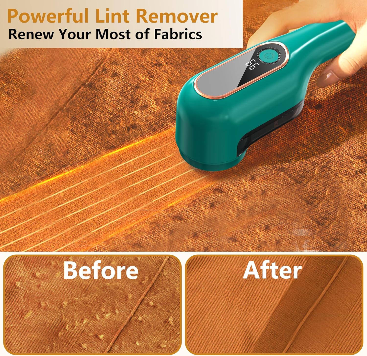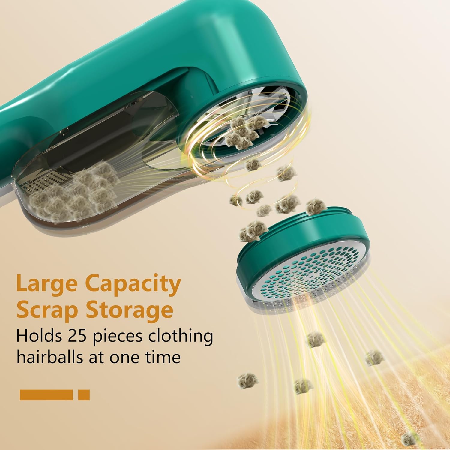 Large Size Electric Charging Fabric Shaver and Lint Remover Large Capacity Scrap Storage, Quickly and Effectively Remove Fluff, Lint, and Bobbles (Dark Green)