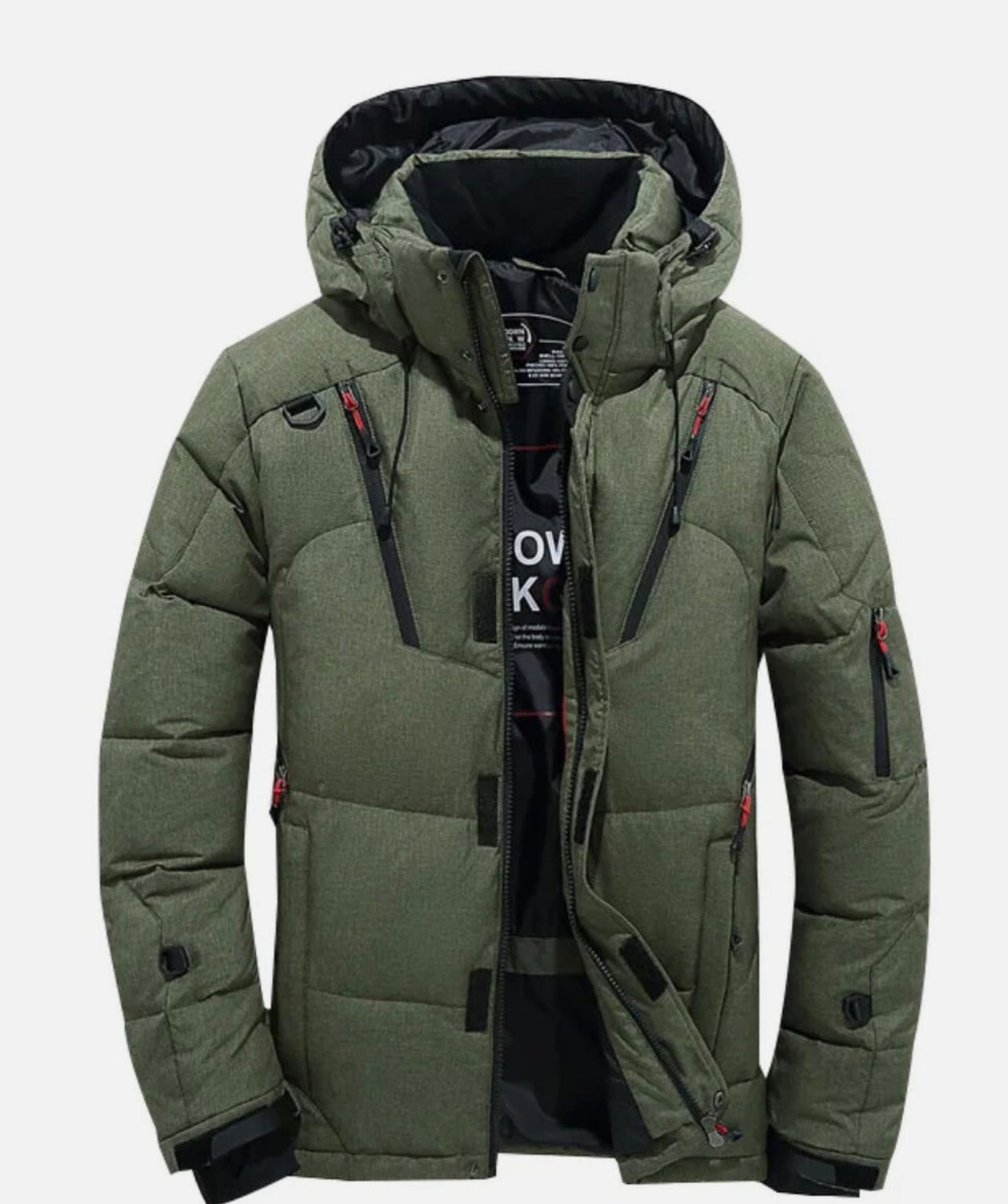 High Quality Men’s winter Coat will keep you warm with the down/feathers filling with a high fill power.  90/10 for down to feather mixture.  Manufactured to with stand Canadian winters