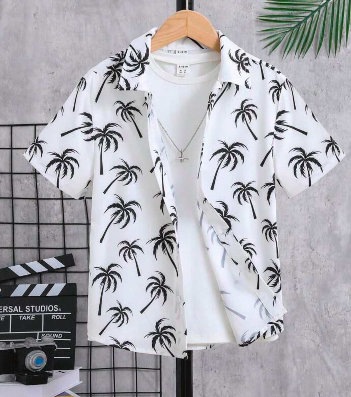 Mens Tree Print Shirt Sleeve Button Up shirt