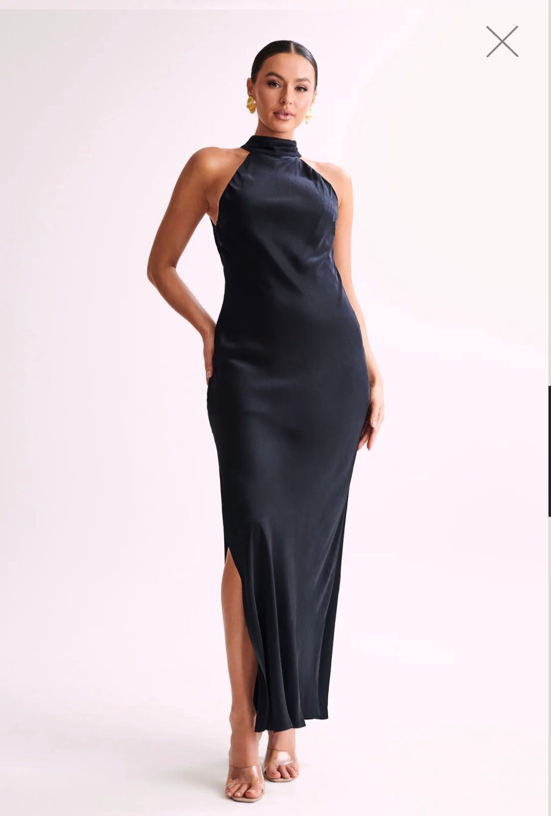 MESHKI Claire Satin Drape Back Maxi Dress with Split