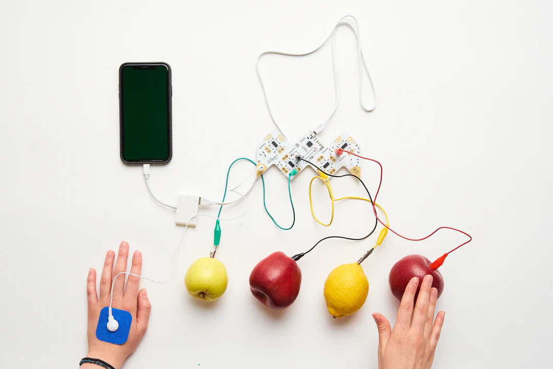 Connect up to 16 objects with alligator clips, pick a different sound for each, and have fun!