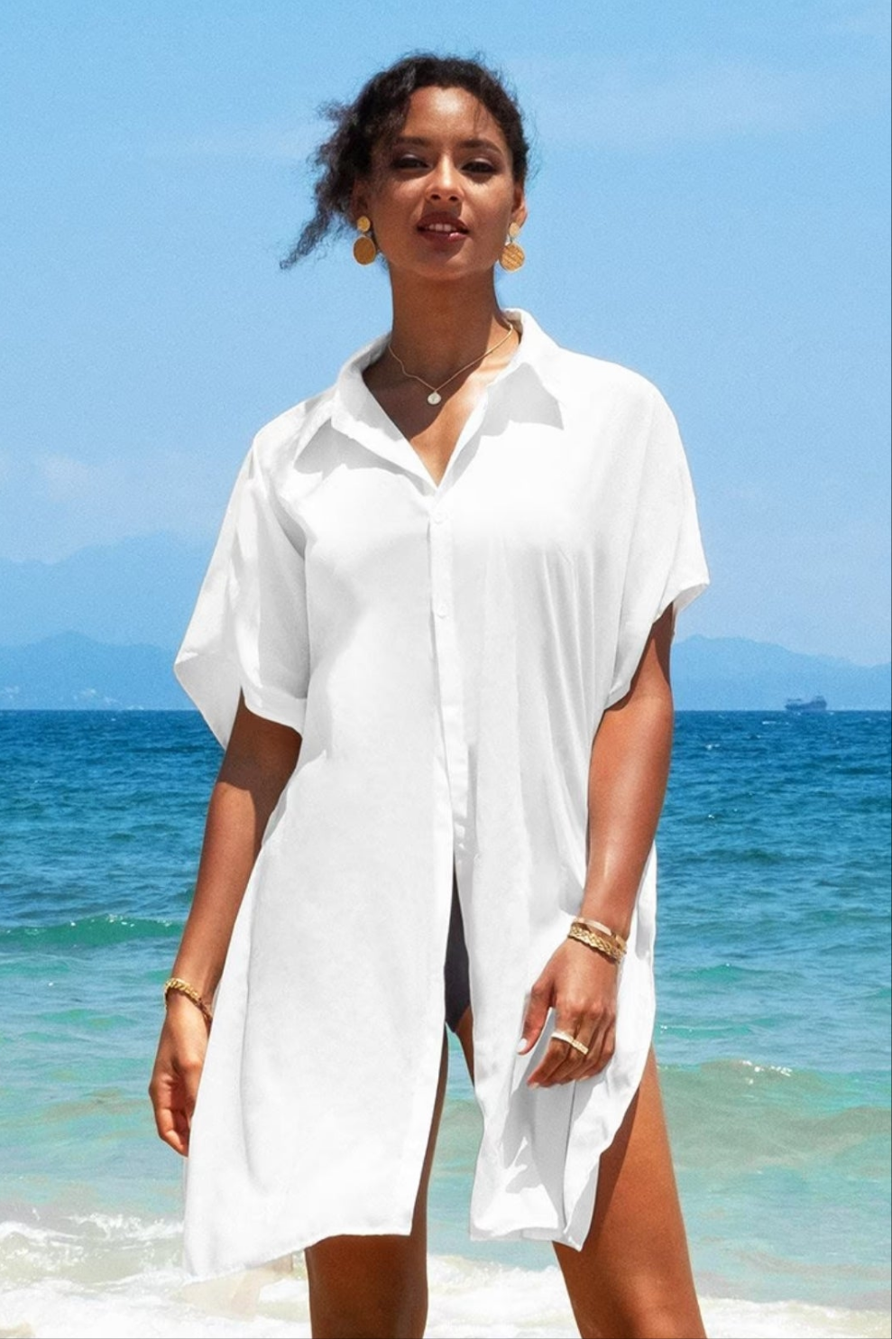 Cupshe Nala White Button Front Shirt Kimono