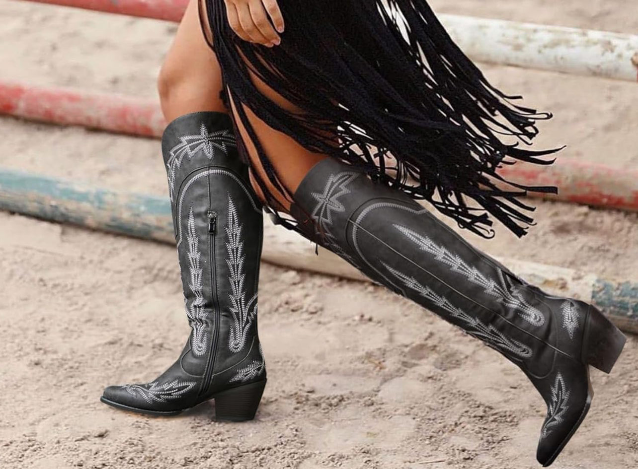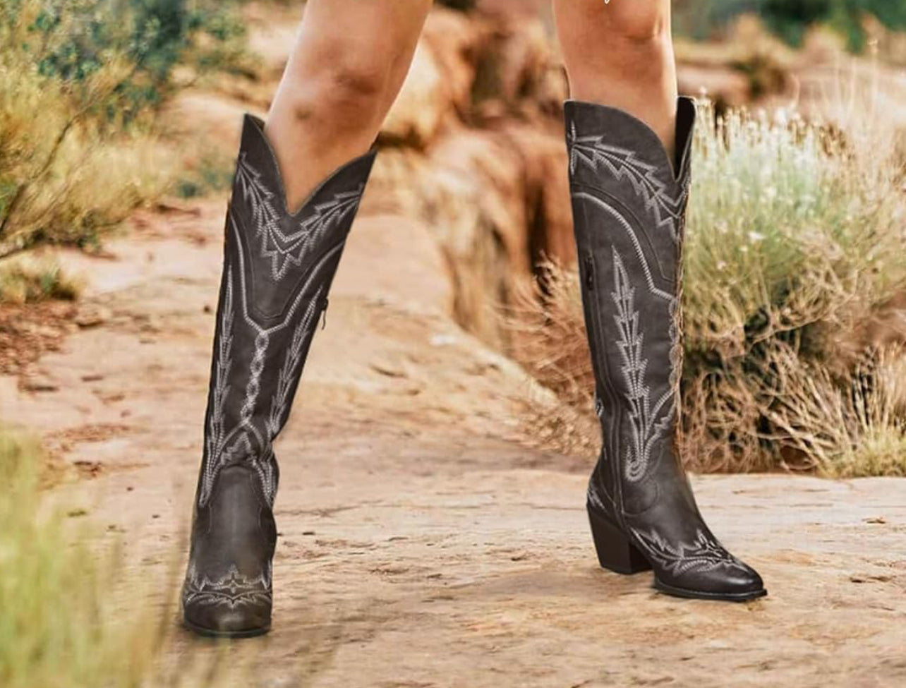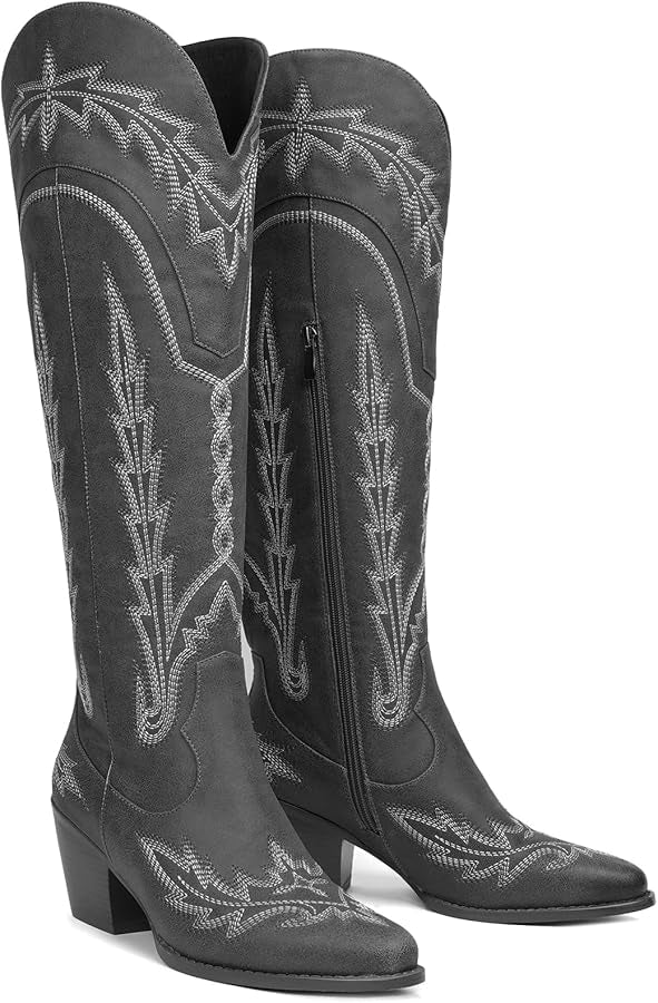 • 【Material】: The cowgirl boots is made of PU fuax leather, rubber sole. The women boots are lined with soft and cozy foam for a more comfortable wear.