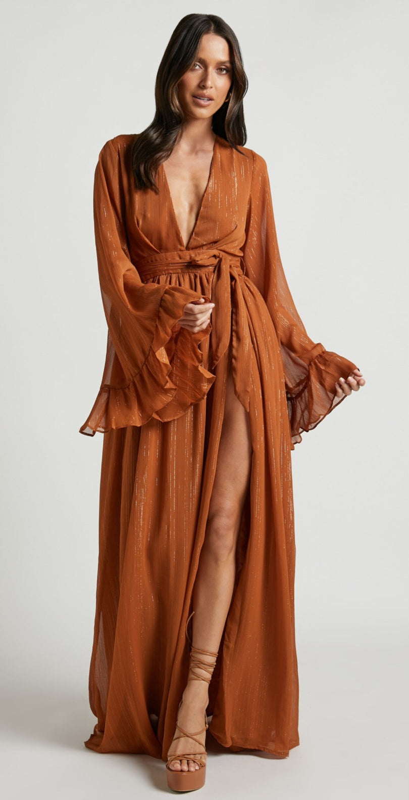 SHOWPO Dangerous women maxi dress - Plunge thigh split dress in rust