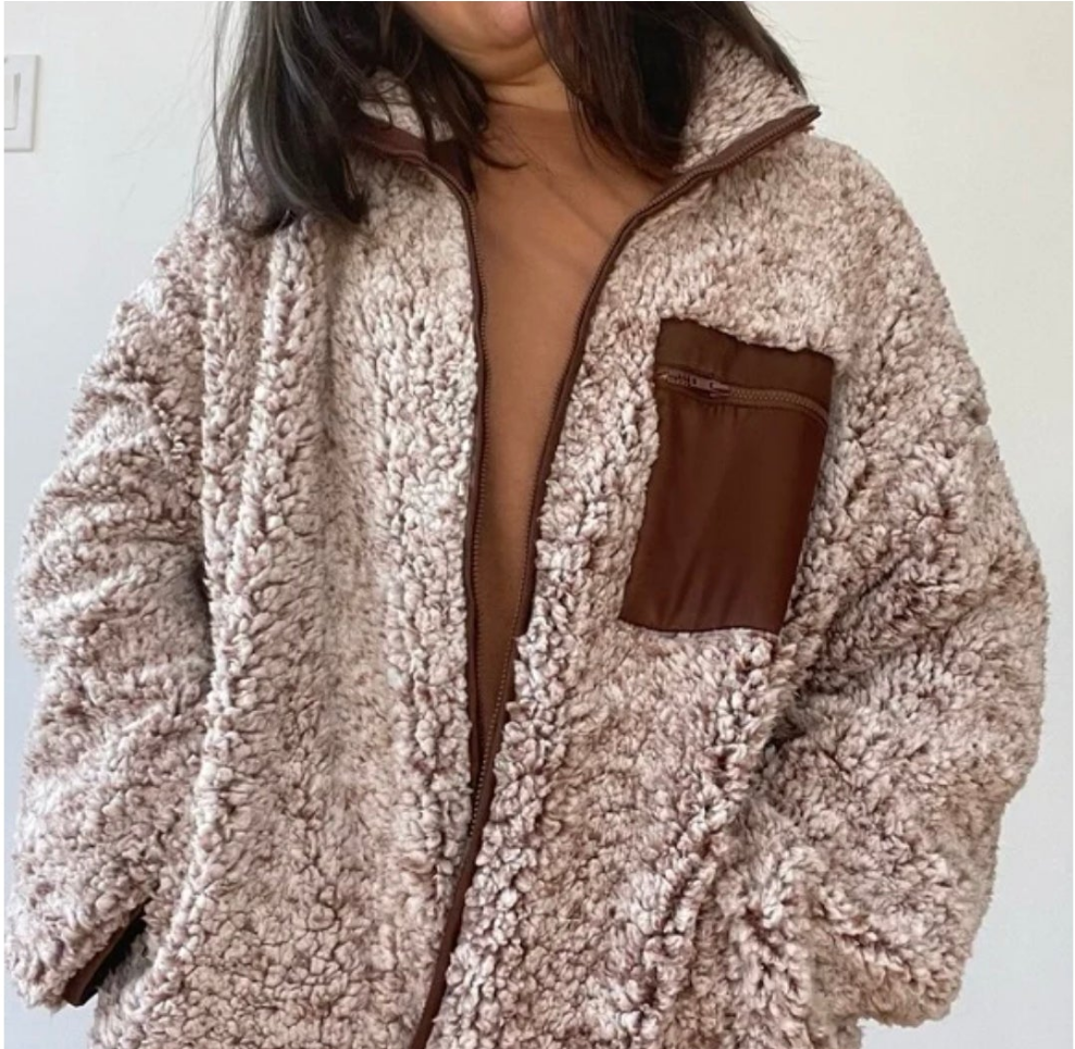 Womens plush zipup teddy jacket sweater