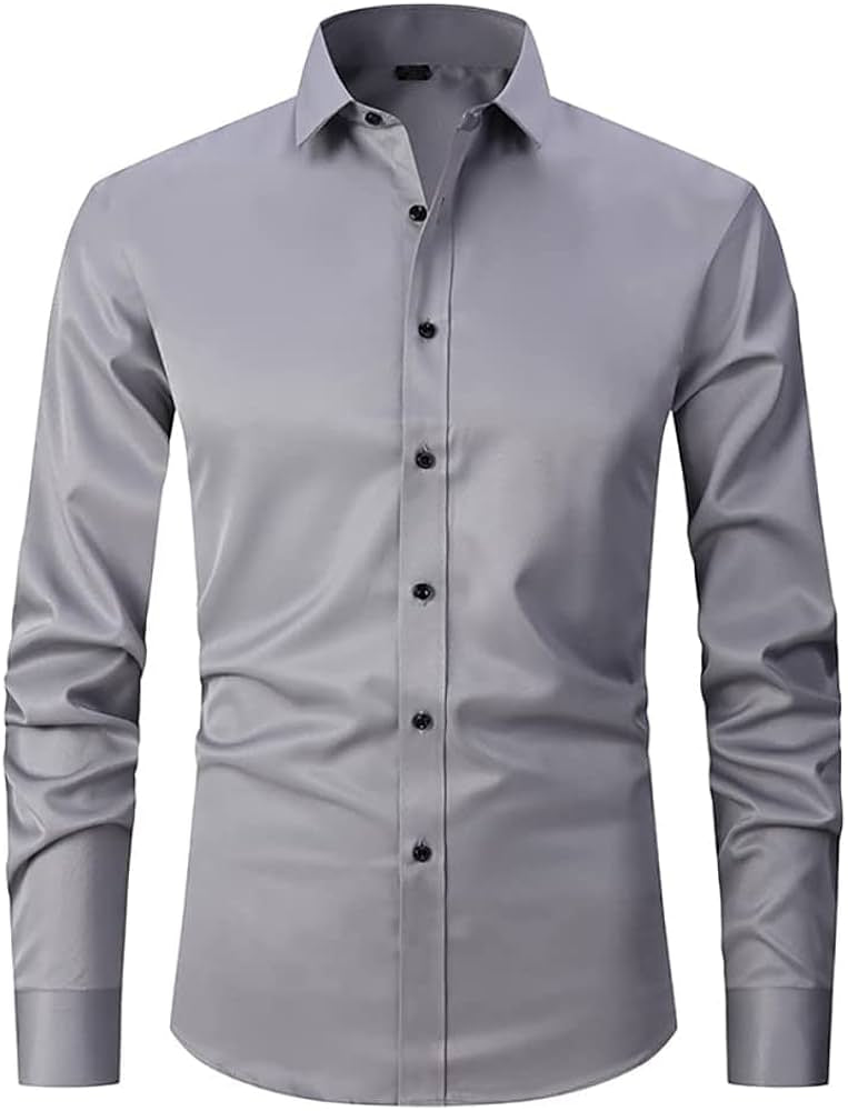 Stretch Anti-Wrinkle Shirt Men,Slim Fit Casual Business Formal Dress Shirt